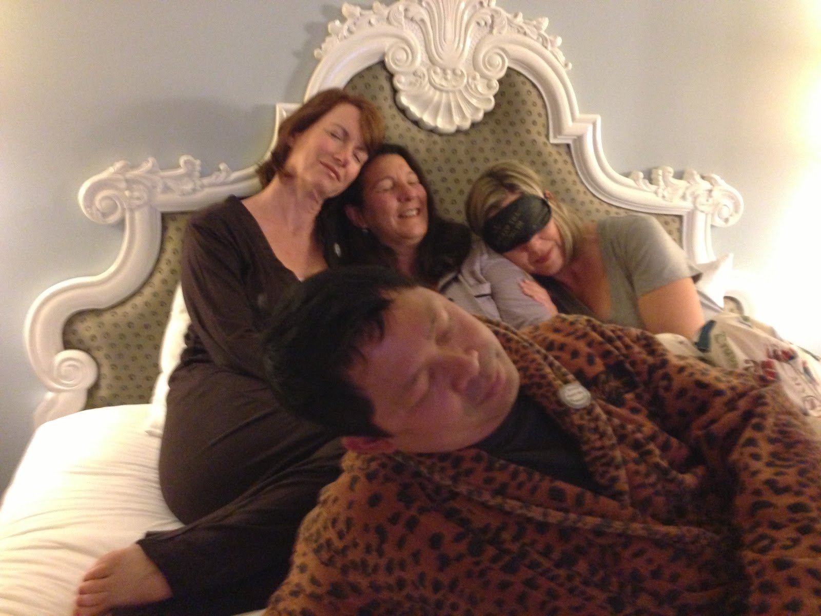 Things I did-- Dropped my pen, knocked my "I read past my bedtime" pin off my pjs, jumped on a bed, took photos, signed books, ate pistachios, met new people, stood in a bathroom we called our "green room," sat in bed with three other writers, and ended the night by ordering room service with five of the nicest and most fun people around.