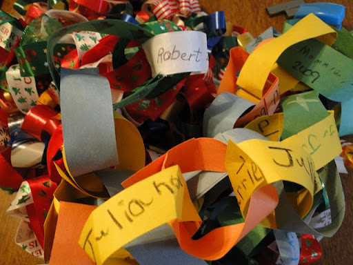 1) Stringing popcorn with my family or making a paper chain where we write down the names of all the people we love.