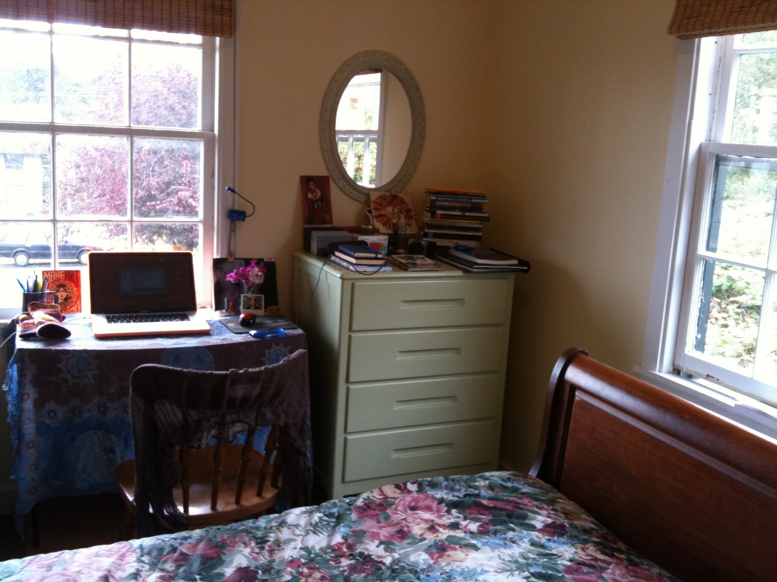 This is my room where I wrote for the last week. I confess, by day two I had put a yellow blanket over the floral comforter because it was hurting my eyes or as I kept saying, "My bedspread is offending me." Annette called my bedspread cover "Victorian Fainting Couch" style, and she was very close to naming what was hurting my eyes.
