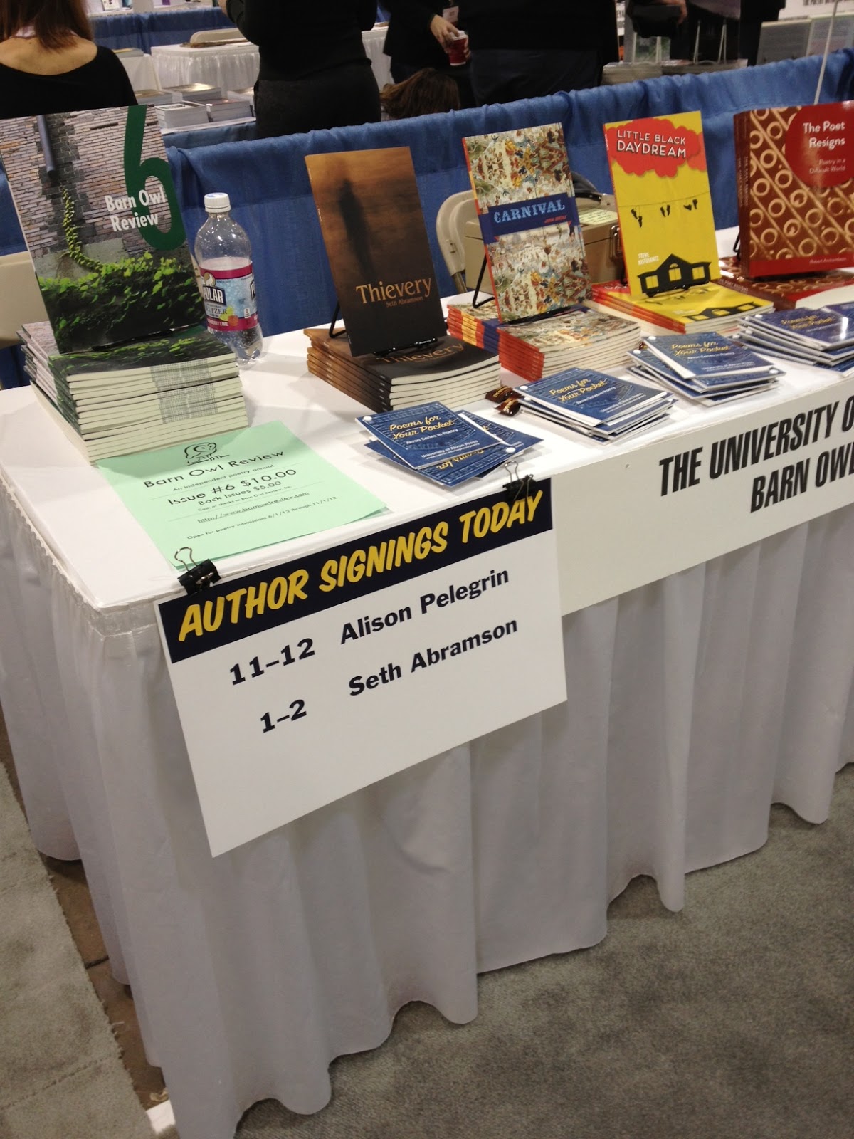Farewell, AWP 2013. I never liked the number 2013 anyway. Hoping to restore my high hopes for 2014. Who knows what color 2014's Barn Owl Review (issue 7!!!) will be.