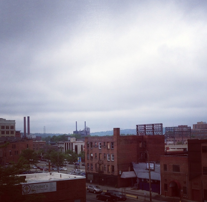 Up there above the hills and the smokestacks and chimneys and rooftops, maybe that's where the poems are roiling without us.