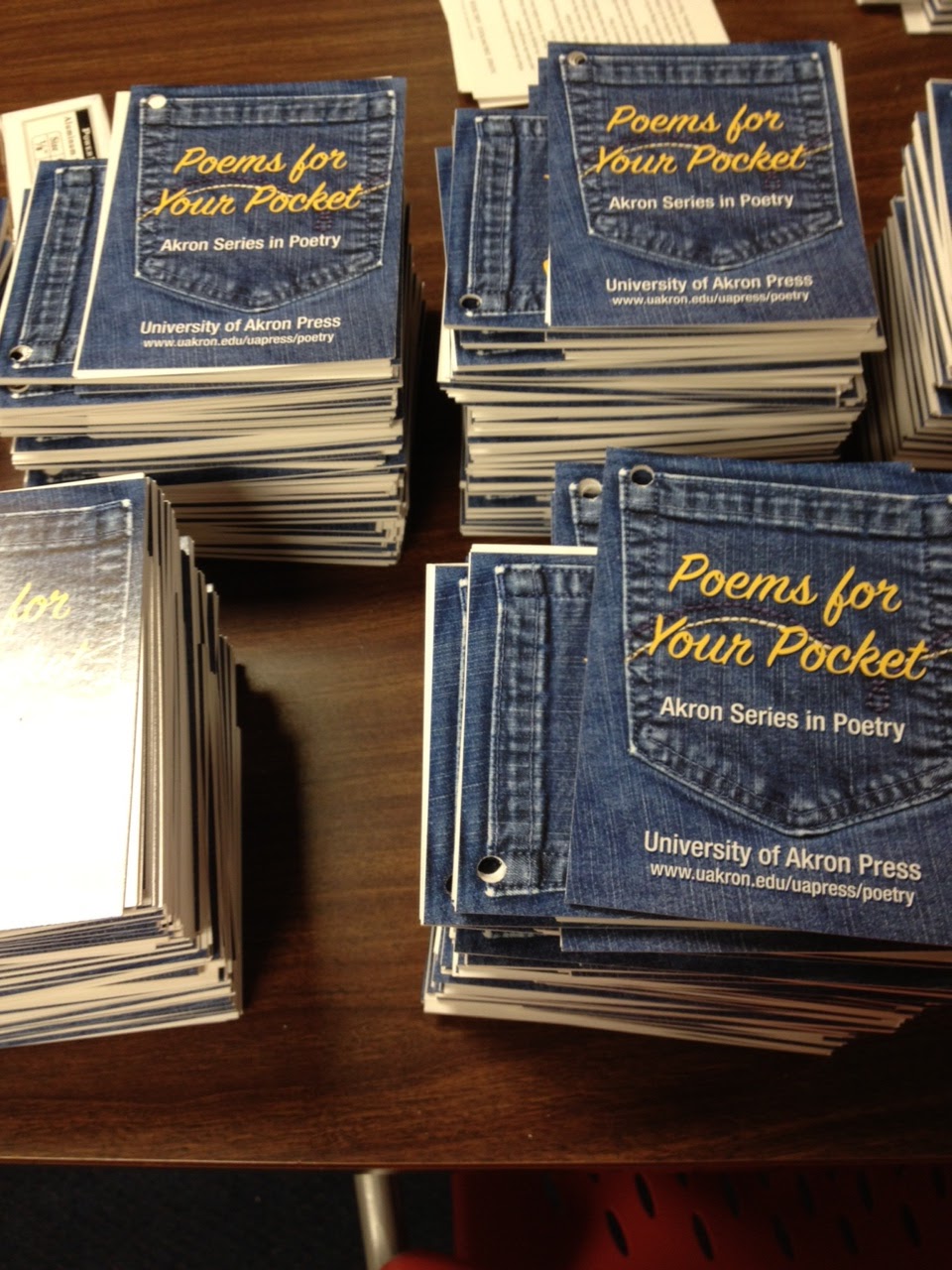 I'll be selling copies of Barn Owl Review issue 6 (and handing out contributor copies), and peddling the many fine titles of the Akron Series in Poetry/Poetics (including the newest by Seth Abramson, Thievery, and The Poet Resigns: Poetry in a Difficult World by Robert Archambeau) every day from 8:30-1:30 at table H1. Please note that our assignment basically makes us TABLE HI. So come say hi. We will be giving away the snazzy postcard booklets pictured above for Poem in your Pocket day, on behalf of the University of Akron Press. Oh, and we will have some attractive bundle discounts for poetry and poetics books.