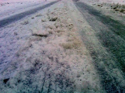 But it's my friend, and I think it's going to really keep me on track. The only thing that makes me uncomfortable is that it's all grassy on the GPS, and here we have snow. But it's melting, so that takes care of that. And what will terrify me now? What will be my new reason for white-knuckling all the way to ___?