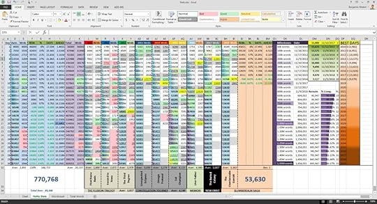 The spreadsheet in all its glory.In the end, my spreadsheet allowed me to recognize the small—sometimes hidden—milestones that can give me a push to keep writing. Whether it’s realizing how close I am to 500,000 cumulative words (obtained on November 3rd, 2017), or seeing that I can beat a previous “high score” day from a past NaNoWriMo, these milestones are what made me realize that the impossible feats of veteran writers are actually quite achievable if you break them down into smaller chunks. And what engineer wouldn’t tackle a problem by first breaking it down into manageable pieces? But don’t take this engineer’s word for it, try it for yourself!
