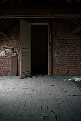 The door doesn't open. I stare at the door knob, remembering a fellow coworker, a mayor of a nearby town, joking about locking people up stairs occasionally. Why would you do that to me? I didn't do anything to him! But no, the door wasn't locked. The knob simply kept turning like a deranged carousel. I realized the door knob was broken. I stare at the thick wooden door that bared my way, the dark attic's dust curling around me.