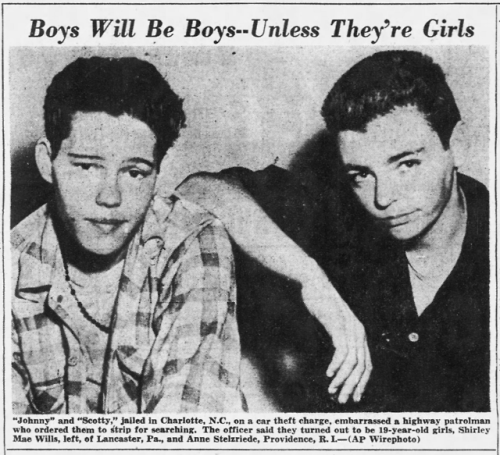 butch criminals “johnny” and “scotty” who drew national coverage for their car theft, discovered after being picked up for lacking driver’s licenses. article from the arizona republic, august 1949