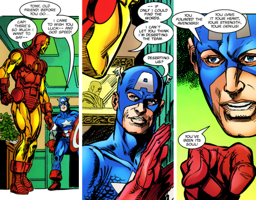 “You founded the Avengers. You gave it your heart, your strength, your genius. You’ve been its soul.” –– Steve Rogers to Tony Stark, Heroes & Legends #1 (1996)