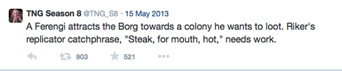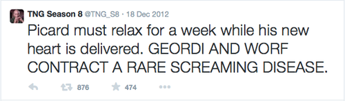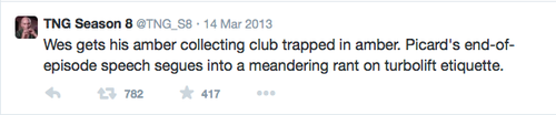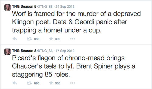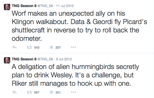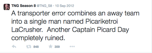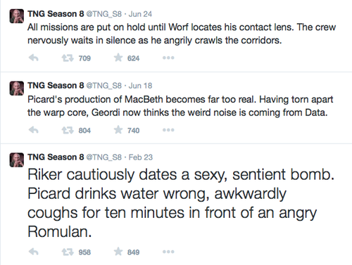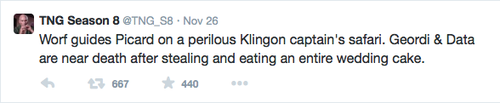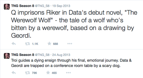 i hope everyone is following TNG Season 8 on twitter because it’s fucking hilarious...