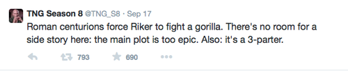 i hope everyone is following TNG Season 8 on twitter because it’s fucking hilarious like