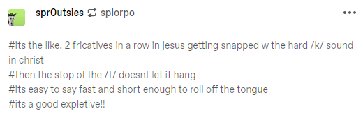 honestly christianity really hit the jackpot with “jesus christ” rolling off the tongue as an…