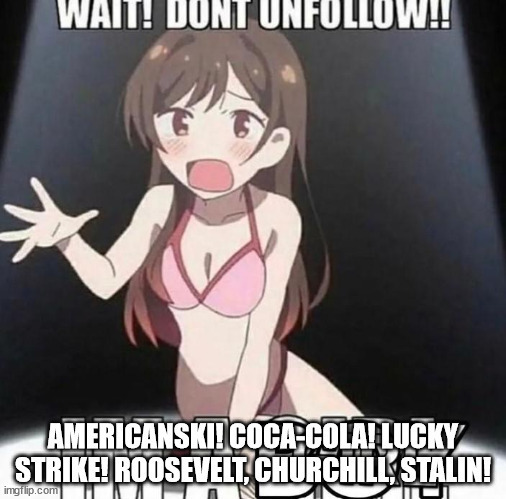 something incredibly American about an Allied trooper yelling brand names at Soviets until they…