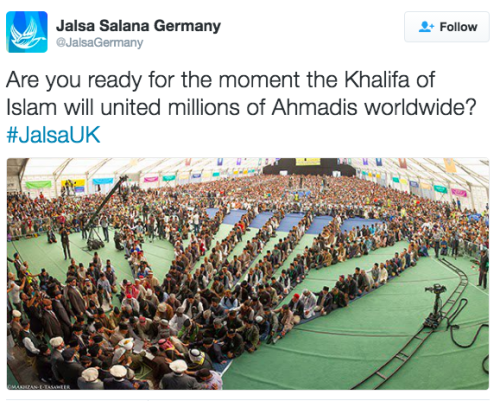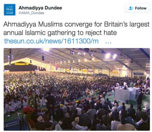 Over 30,000 Muslims gathered in the U.K. to protest ISIS — but you probably didn’t hear about it.More than 30,000 Muslims from around the world congregated at a farm in the United Kingdom for a three-day event protesting ISIS and religious extremism, the Independent reported. The protest was part of the 50th annual Jalsa Salana, an annual convention and gathering for Ahmadiyya Muslims.