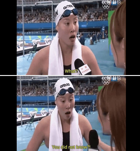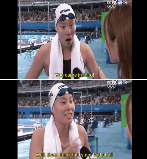 Watch: Chinese swimmerFu Yuanhui had no idea she won a Bronze medalme when i do something right and thought i fucked up