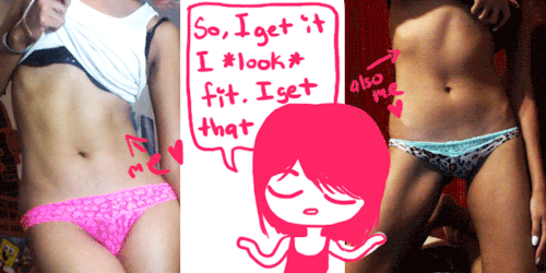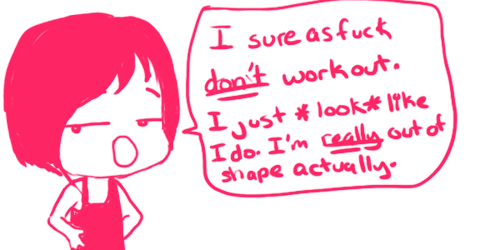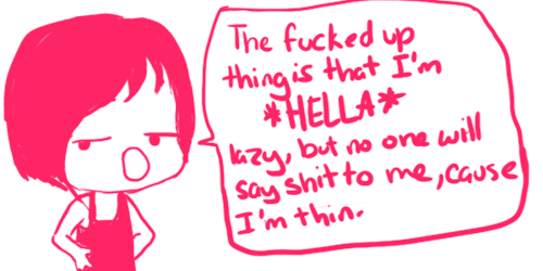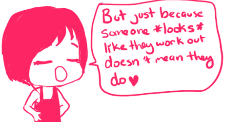 Seriously. Even if I was hella in shape, really healthy, no one would be asking for health or work out tips from me if I was fat. Stop assuming because someone looks like what society deems as ‘healthy’ or ‘fit’ that they are, it’s a lie, they are try to sell you things and make you hate and judge strangers. Stop buying into it.