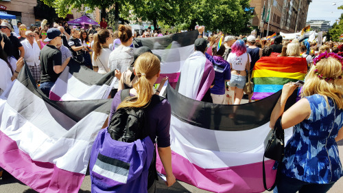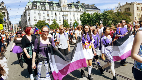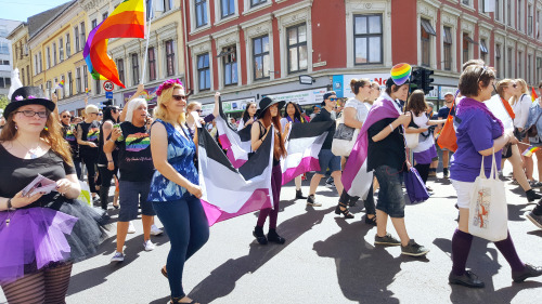 Ace pride at Oslo Pride 2016 parade, in the capitol of Norway. We didn’t know beforehand that there was an ace group, but then @withmoore and I saw the flags and joined them immediately.