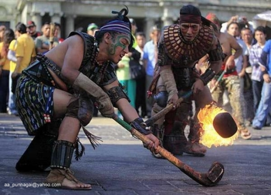 Fire hockey already exists. Welcome topelota purépecha, or Mayan Fireball hockey.