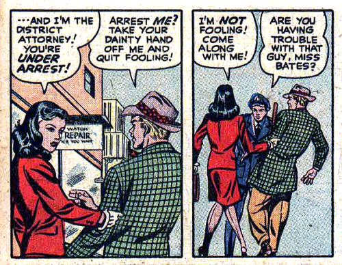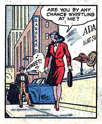 In one of the greatest stories ever told, district attorney Betty Bates,“Lady-at-Law,” arrests a guy for whistling at her because he’s breaking public nuisance laws.