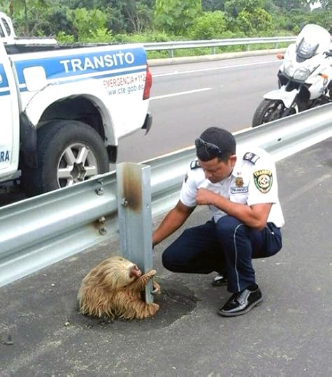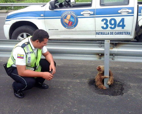 Little guy being rescued after trying to cross the highway in Ecuador.