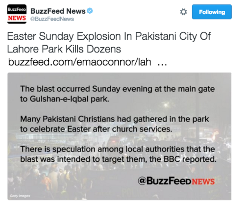 Many Pakistani Christians had gathered in the park to celebrate Easter after church services. [x]