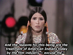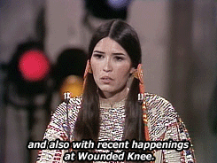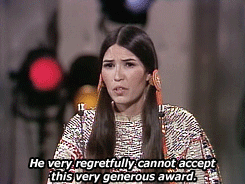 I got dressed in my traditional Indian regalia, but there was a man, he was the producer of the whole show. He took that speech away from me and he warned me very sternly. “I’ll give you 60 seconds or less. And if you go over that 60 seconds, I’ll have you arrested. I’ll have you put in handcuffs.”