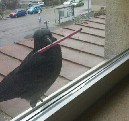 That crow is more prepared than some of my students.
