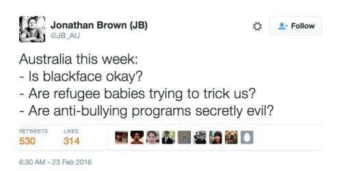 I am fucking ashamed to be Australian. I’m not leaving, this is my home, but I am ashamed.
