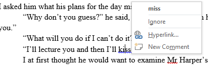 Huh, that’s weird. Word doesn’t like the way I used the word kiss there. Okay then, spellcheck, how do you think I should use it?