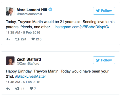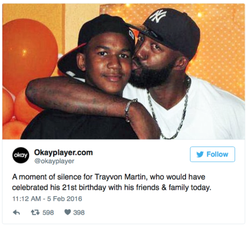 Friday, Feb. 5, would have been the 21st birthday of Trayvon Martin, who was killed in Florida in February 2012 by George Zimmerman. Happy Birthday Trayvon. The tweet from BET shows how Trayvon’s legacy liveson four years later.