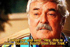 “I got a fan letter from a young lady. It was a suicide note.So I called her, and I said, “Hey, this is Jimmy Doohan. Scotty, from Star Trek.” I said, “I’m doing a convention in Indianapolis. I wanna see you there.”