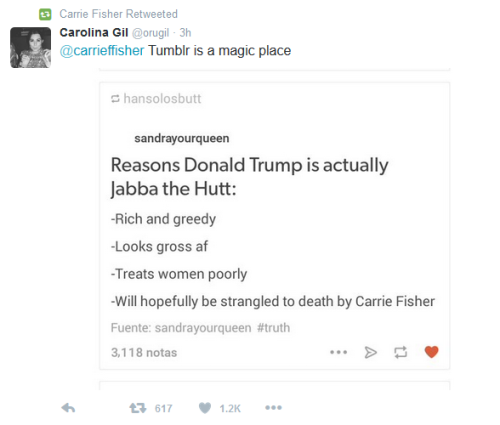 oh my god carrie fisher retweeted that one post