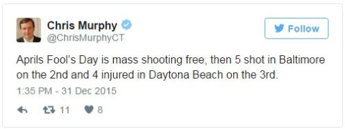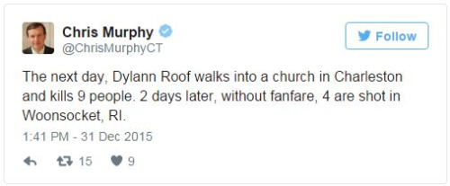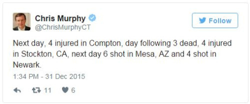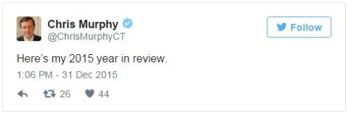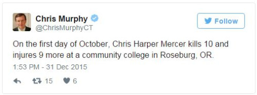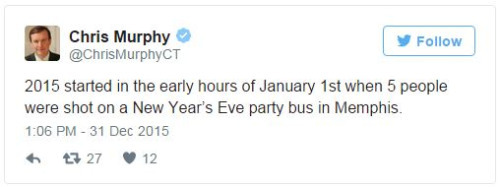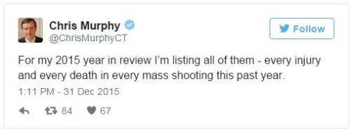 Sen. Chris Murphy is tweeting every U.S. mass shooting in 2015As pundits and average citizens reflect on the year past during this New Year’s Eve, Sen. Chris Murphy (D-Conn.) is marking grim milestones.