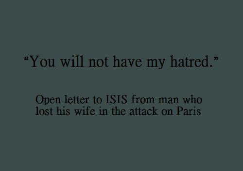 Antoine Leiris posted a Facebook message to ISIS, after his wife was killed in the Paris attack,“You will not have my hatred.”