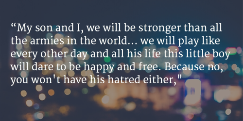 On Friday night you stole the life of an exceptional being, the love of my life, the mother of my son, but you will not have my hatred.