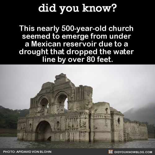The Temple of Quechula was built in 1564 and abandoned in the 1700s because of a plague.