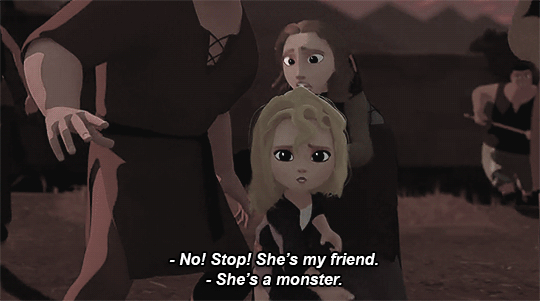 - [Nimona]: Oh, you mean from villains like you? Or monsters like me?