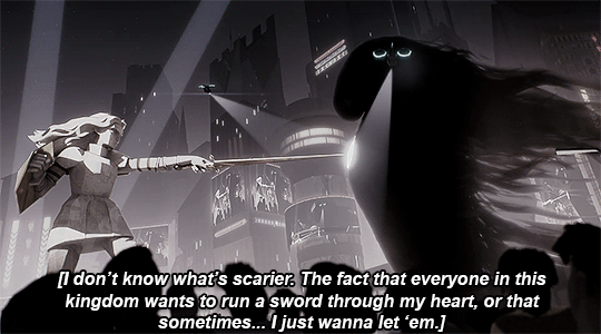 - [Nimona]:You should be questioning everything right now. The will of Gloreth, the Institute, the wall. What’s it all really for?