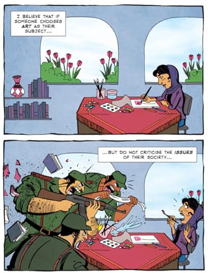 This cartoon, that she posted on her Facebook page last year, depicts members of the Iranian parliament as animals. It was drawn in protest of new legislature in Iran that will restrict access to contraception and criminalise voluntary sterilisation. Ate...