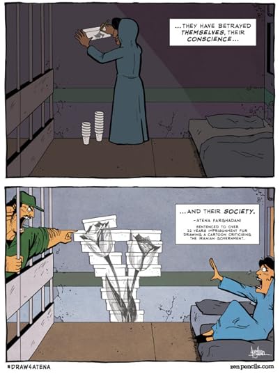 Atena Farghadani is a 28-year-old Iranian artist. She was recently sentenced to 12 years and 9 months in prison for drawing a cartoon.
