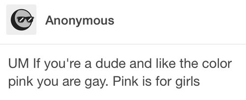 It implies that men and women must behave a certain way and that anyone who does not adhere to these gender roles must be a different gender.