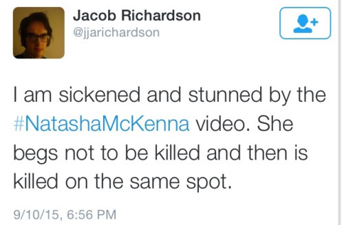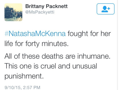 No Criminal Charges For Deputies Who Killed Natasha McKenna in Jail + Video ReleasedOf Her Being Tortured To Death NakedFairfax County’s head prosecutor announced Tuesday that he will not pursue charges in the controversial death of a mentally ill woman who died after being restrained and Tasered at the Fairfax County jail in February, calling it a“tragic accident”.