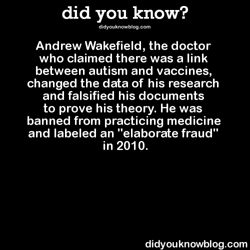Andrew Wakefield, the doctor who claimed there was a link between autism and vaccines, changed the data of his research and falsified his documents to prove his theory. He was banned from practicing medicine and labeled an “elaborate fraud” in 2010. Source
