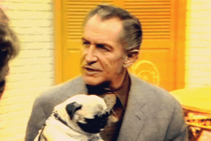 Vincent Price with his pug, Puffie, on Betty White’s Pet Set (1971)