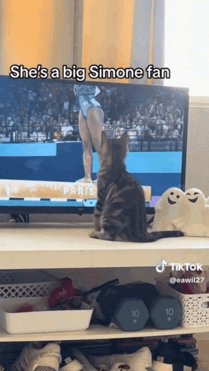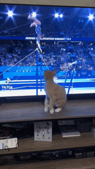 Today’s serotonin is brought to you by videos of cats trying to catch Olympic gymnasts on TV screens