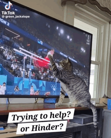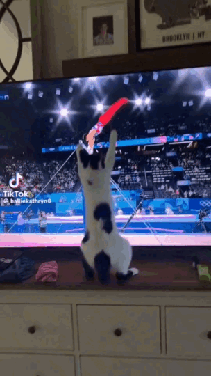 Today’s serotonin is brought to you by videos of cats trying to catch Olympic gymnasts on TV screens…