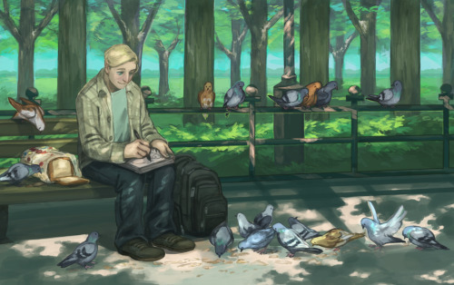 inspired by a headcanon of my sister’s and some really cute pigeon feeding photos grace sent me.