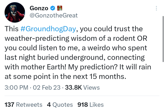 that muppet post reminded me, most if not all of the main muppets have twitter...