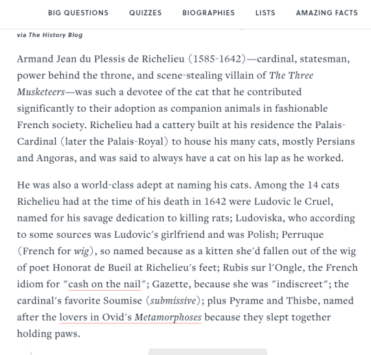the fact that movie adaptations of The Three Musketeers aren’t consistently giving me crazy cat man Richelieu is honestly so outrageous I want to see - NO I DEMAND to see the Red Eminence draw up important documents and plot to destroy France’s enemies while Soumise naps in his lap and Ludoviska tries to knock ink bottles off the table!!! Wake up how are movie studios not taking this excellent opportunity to give us Richelieu lounging on an armchair in the dark and petting cats like a ...