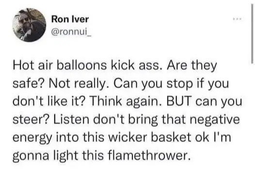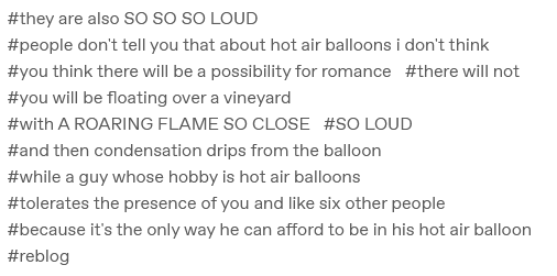 Now taking “romantic hot air balloon scene” out of my imaginary future fic outline. …Or possibly putting it in, as a comedy scene.