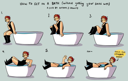 I was taking with my friend about good omens and we were wondering how the hell aziraphale-as-crowley managed to get into that bath without getting his socks wet and so I drew this ‘helpful’ guide.