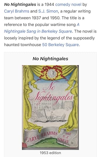 No Nightingales - The BookSo, who was gonna tell me that ‘No Nightingales’ is a book about two ghosts preventing a war from happening, then being in a love-hate relationship and not talking to each other for 66 years in a house on Berkeley Square??